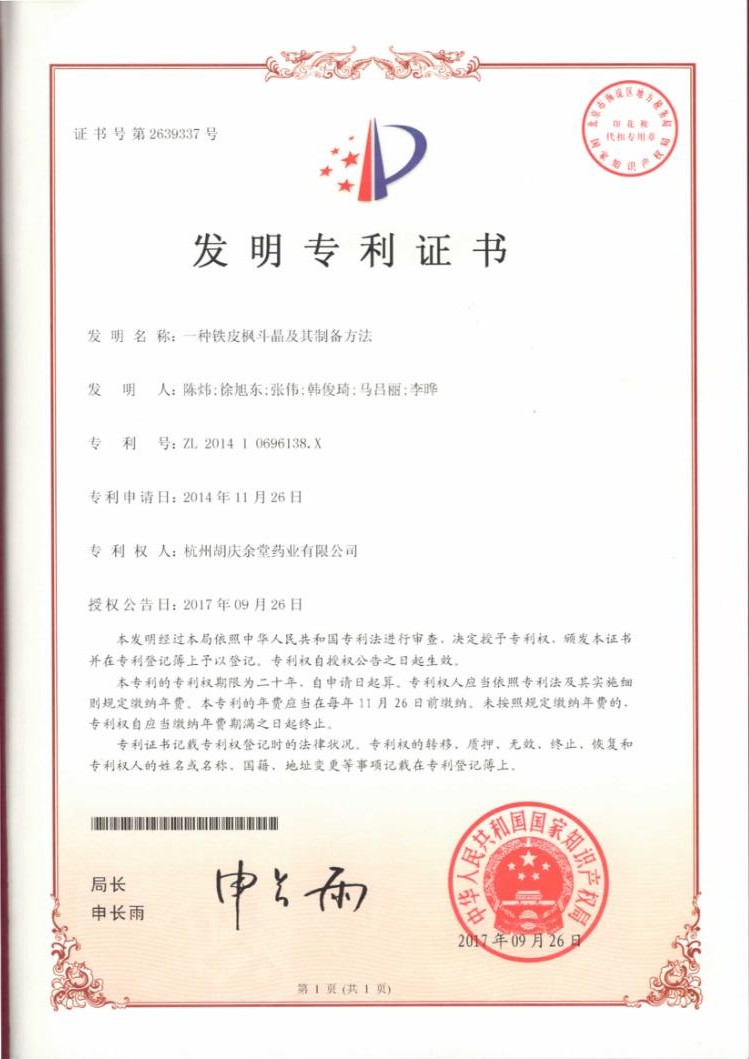 (2)完成保健食品铁皮枫斗晶、蜂胶胶囊、铁皮石斛西洋参胶囊等产品的研发。